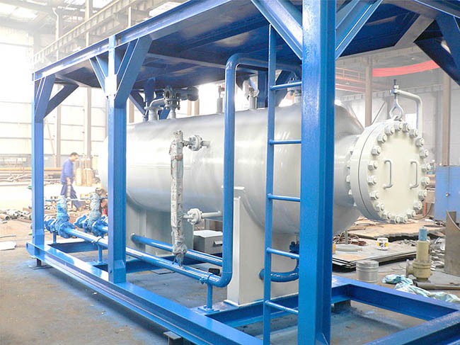 隨著石油資源消耗的不斷增加以及可開采石油資源的減少,油頁巖成為備受關注的石油替代能源。油氣水三相分離器是油頁巖地表系統中的關鍵設備,采出混合液在臥式油氣水三相分離器中經由重力沉降以及碰撞聚結達到油、氣、水的分離。油氣田生產的天然氣及原油含有不凝氣,通常采用輕烴回收、原油穩定、天然氣凈化等裝置來回收輕質油及其它產品,這些裝置都有對油、氣、水混合液進行分離的工藝過程。油氣水三相分離器主要用于油井或氣井采出物的油/氣/水三相分離,既要分離開液體和氣體,也要將液體中的油和水分離開來。油、氣和水分別通過不同的管道走向下一環節。油氣水三相分離器比氣液兩相分離器和油水兩相分離器的泛用程度高。相應的,也有更加復雜的內件結構。
